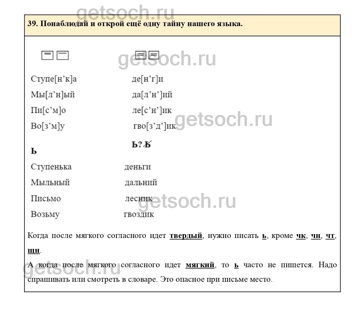 Рассмотрим ответы на Упражнение 39 из учебника по русскому языку для 2 класса Соловейчик