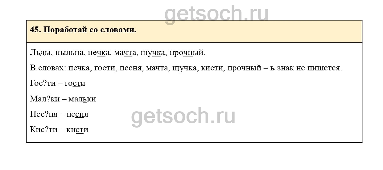 Рассмотрим ответы на Упражнение 45 из учебника по русскому языку для 2 класса Соловейчик
