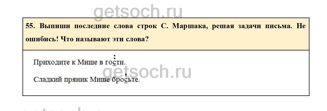 55. Выпиши последние слова строк С. Маршака, решая задачи письма. Не ошибись! Что называют эти слова?