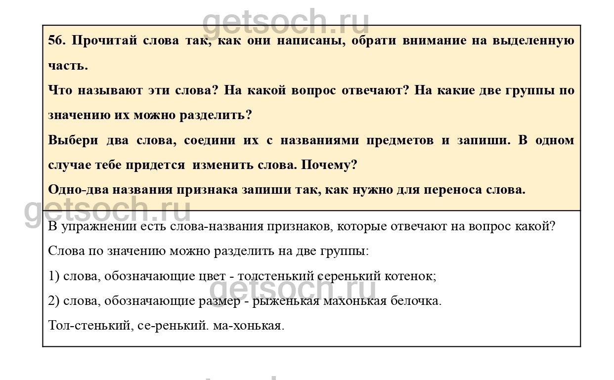 Рассмотрим ответы на Упражнение 56 из учебника по русскому языку для 2 класса Соловейчик