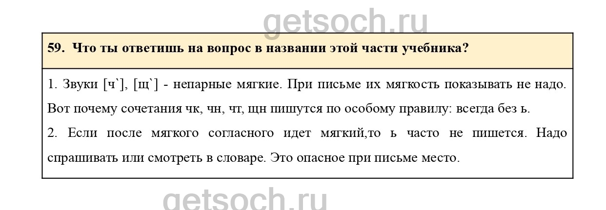 Рассмотрим ответы на Упражнение 59 из учебника по русскому языку для 2 класса Соловейчик