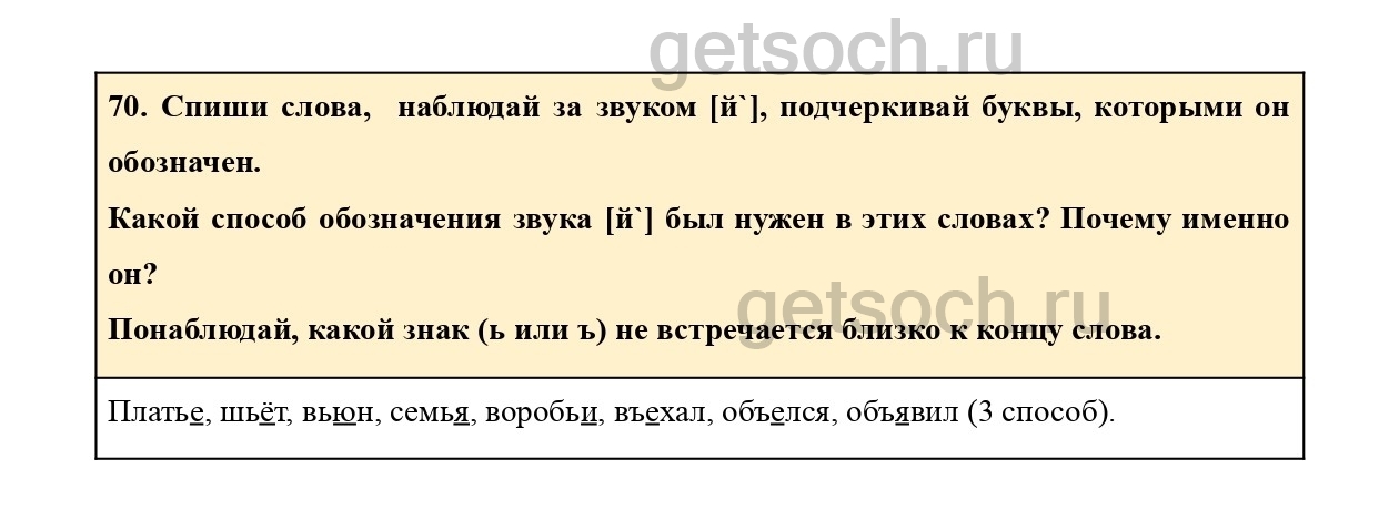 70. Спиши слова, наблюдай за звуком [й`], подчеркивай буквы, которыми он обозначен.