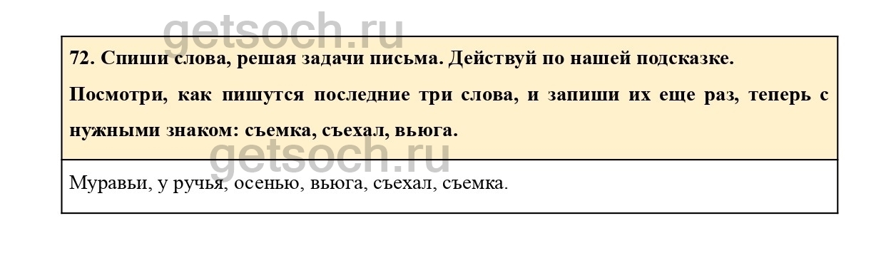 72. Спиши слова, решая задачи письма. Действуй по нашей подсказке.