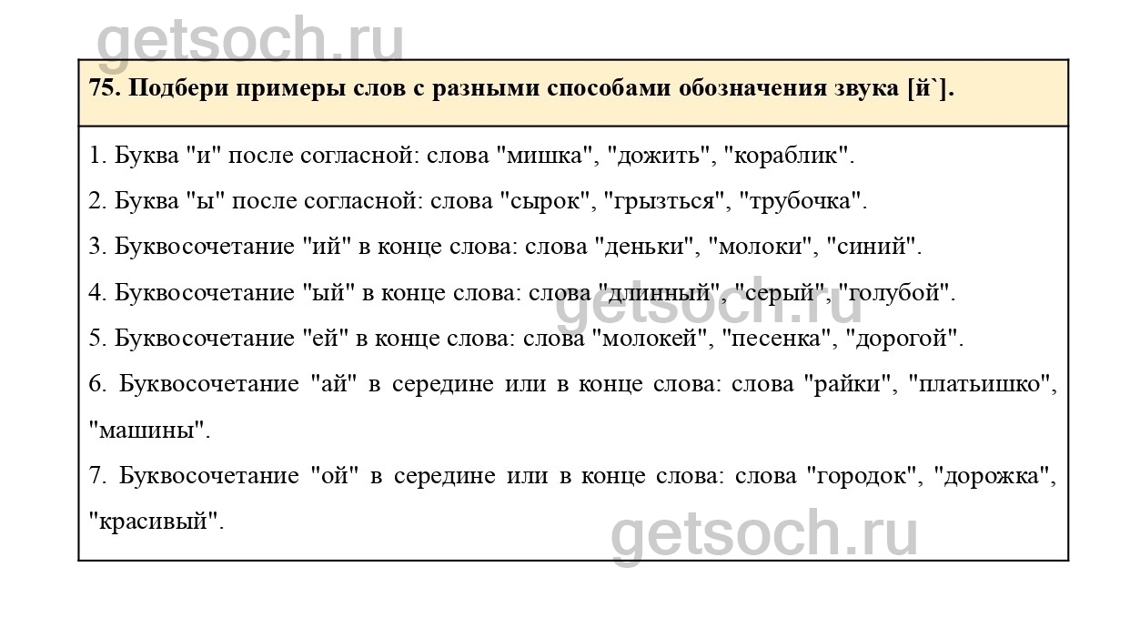 75. Подбери примеры слов с разными способами обозначения звука [й`].