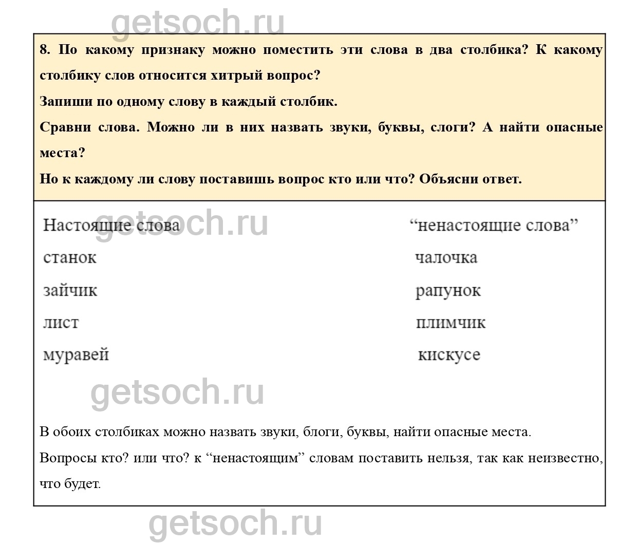 8. По какому признаку можно поместить эти слова в два столбика? К какому столбику слов относится хитрый вопрос?