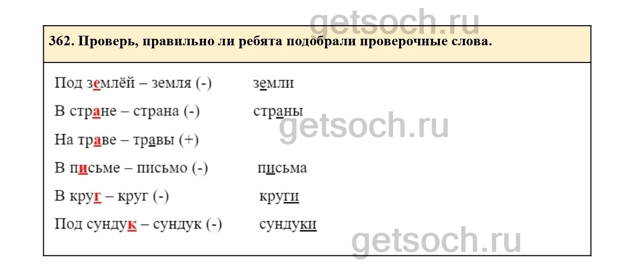 362. Проверь, правильно ли ребята подобрали проверочные слова.