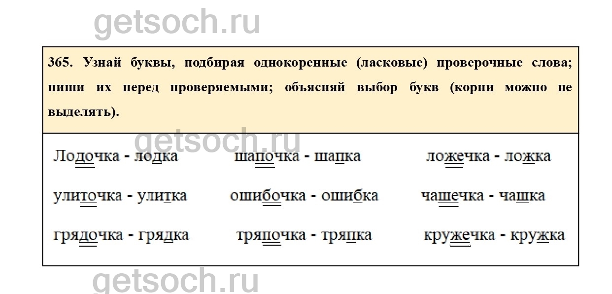 365. Узнай буквы, подбирая однокоренные (ласковые) проверочные слова; пиши их перед проверяемыми; объясняй выбор букв (корни можно не выделять).