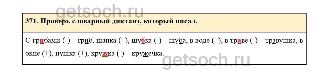 Рассмотрим ответы на Упражнение 371 из учебника по русскому языку для 2 класса Соловейчик