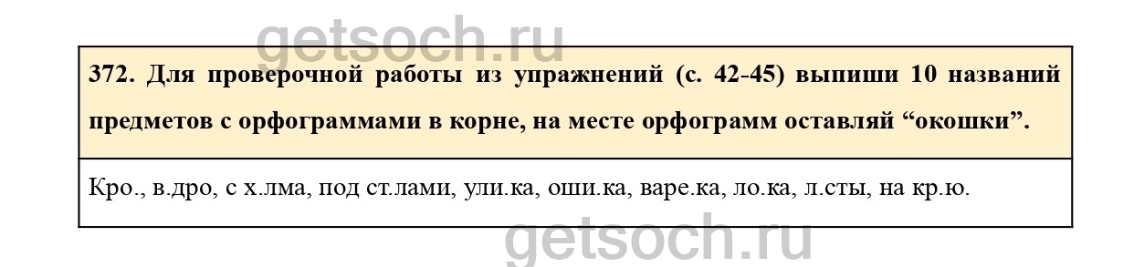 372. Для проверочной работы из упражнений (с. 42-45) выпиши 10 названий предметов с орфограммами в корне, на месте орфограмм оставляй “окошки”.