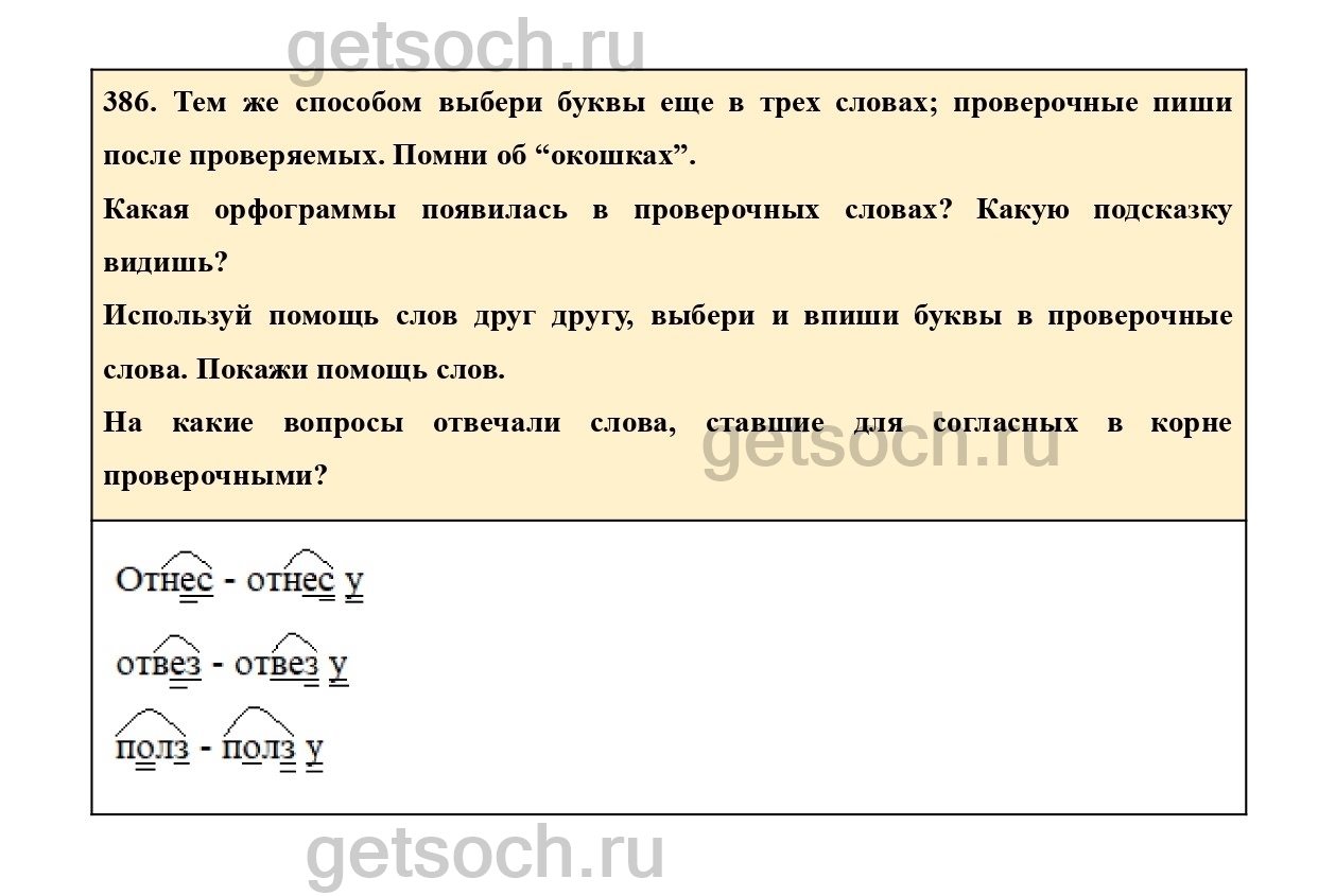 Рассмотрим ответы на Упражнение 386 из учебника по русскому языку для 2 класса Соловейчик