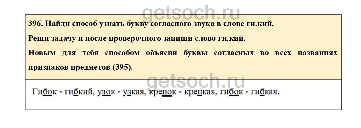 396. Найди способ узнать букву согласного звука в слове ги.кий.