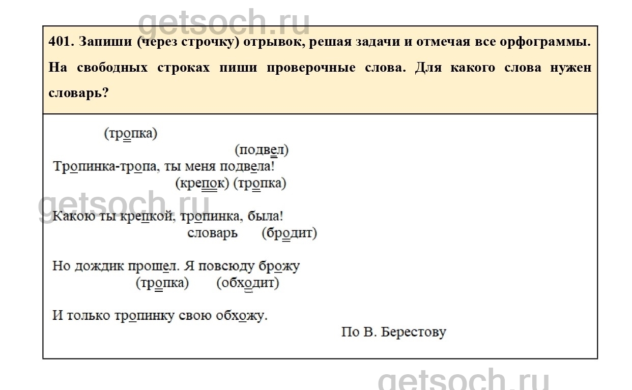 Рассмотрим ответы на Упражнение 401 из учебника по русскому языку для 2 класса Соловейчик