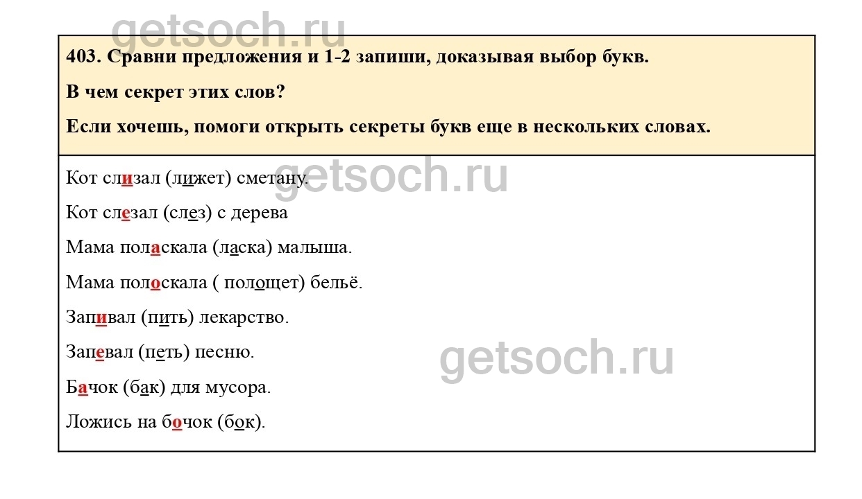 403. Сравни предложения и 1-2 запиши, доказывая выбор букв.