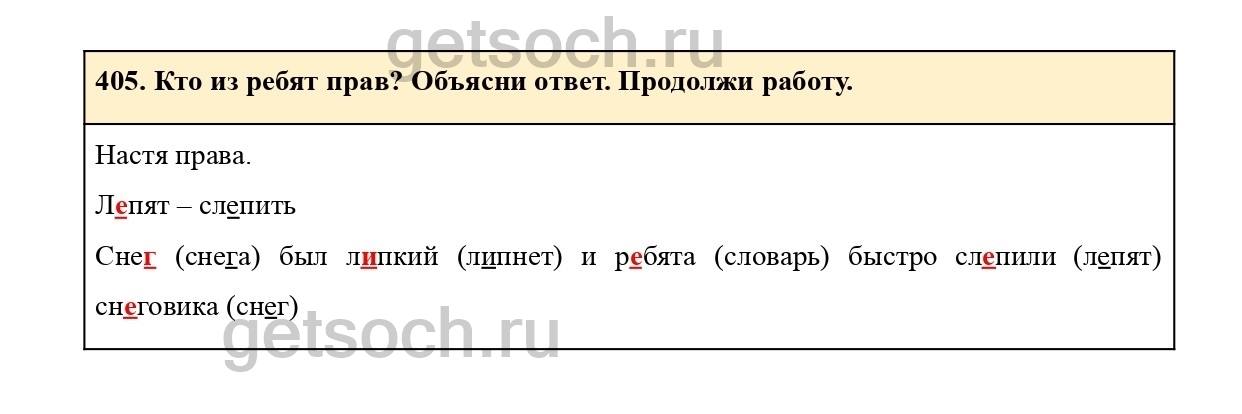 Рассмотрим ответы на Упражнение 405 из учебника по русскому языку для 2 класса Соловейчик