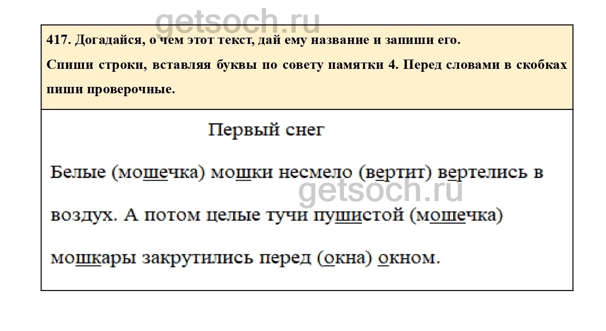 Рассмотрим ответы на Упражнение 417 из учебника по русскому языку для 2 класса Соловейчик