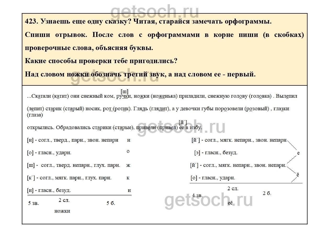 Рассмотрим ответы на Упражнение 423 из учебника по русскому языку для 2 класса Соловейчик