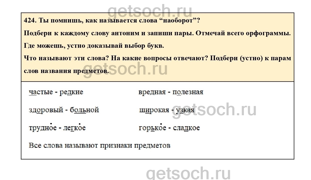 Рассмотрим ответы на Упражнение 424 из учебника по русскому языку для 2 класса Соловейчик