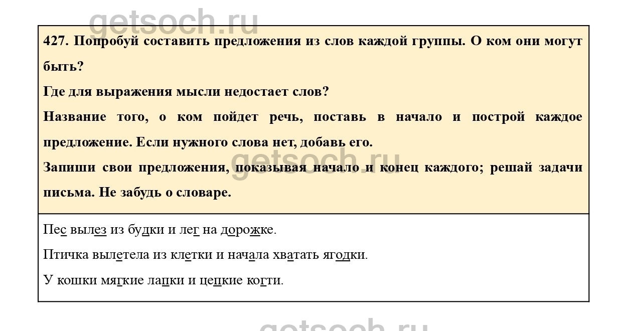 Рассмотрим ответы на Упражнение 427 из учебника по русскому языку для 2 класса Соловейчик