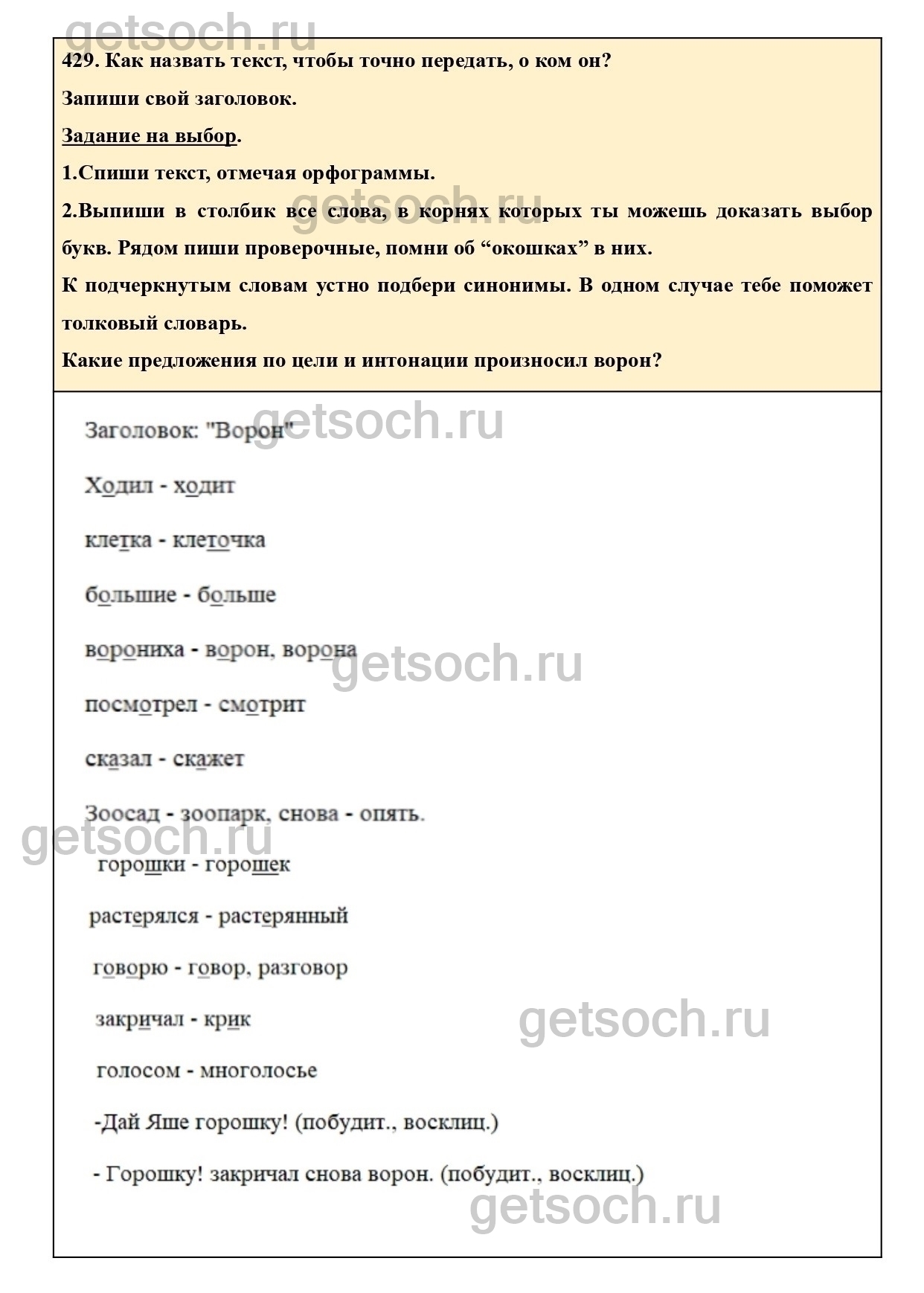 Рассмотрим ответы на Упражнение 429 из учебника по русскому языку для 2 класса Соловейчик