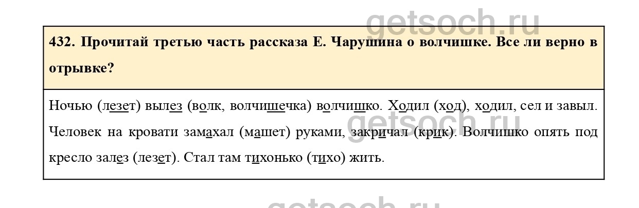 432. Прочитай третью часть рассказа Е. Чарушина о волчишке. Все ли верно в отрывке?