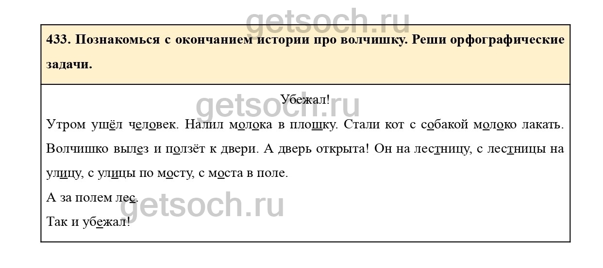 433. Познакомься с окончанием истории про волчишку. Реши орфографические задачи.
