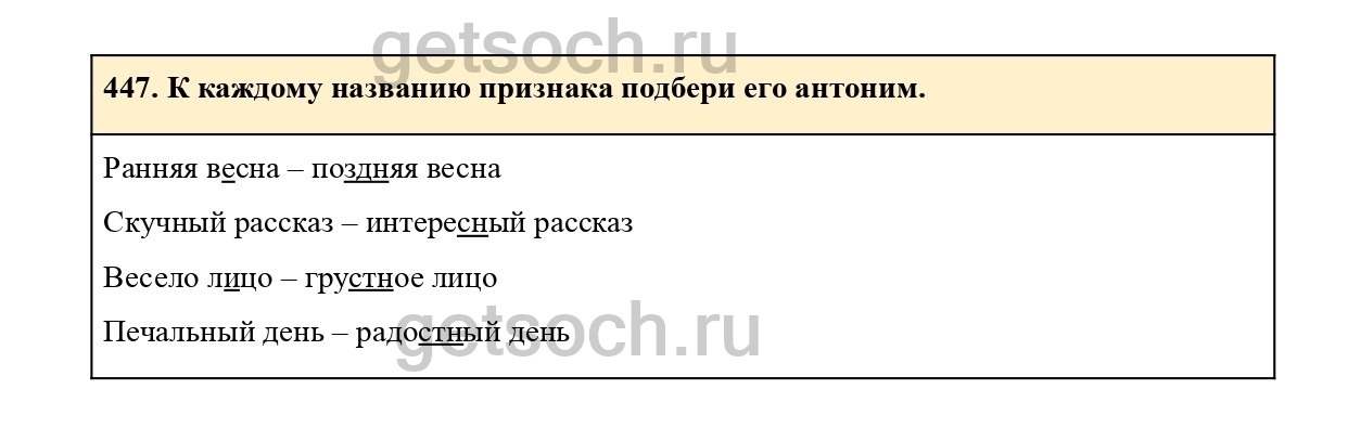 Рассмотрим ответы на Упражнение 447 из учебника по русскому языку для 2 класса Соловейчик