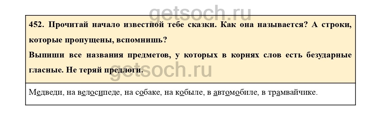 Рассмотрим ответы на Упражнение 452 из учебника по русскому языку для 2 класса Соловейчик