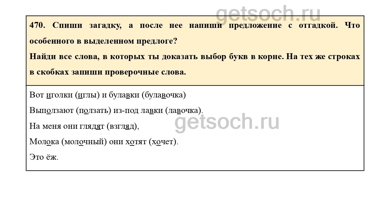 470. Спиши загадку, а после нее напиши предложение с отгадкой. Что особенного в выделенном предлоге?