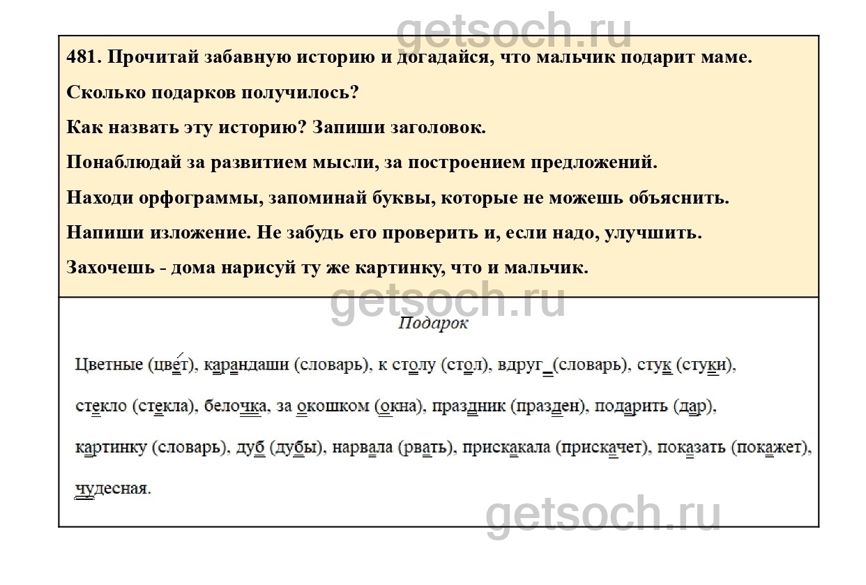 Рассмотрим ответы на Упражнение 481 из учебника по русскому языку для 2 класса Соловейчик