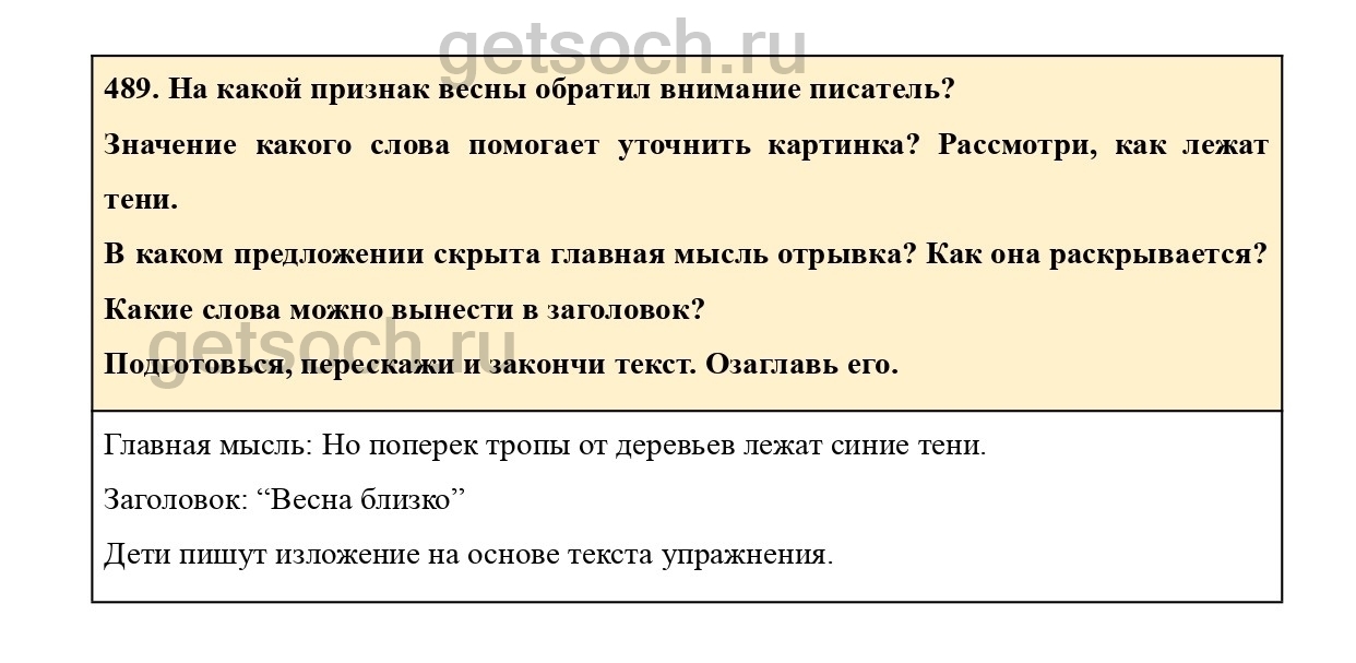 Рассмотрим ответы на Упражнение 489 из учебника по русскому языку для 2 класса Соловейчик