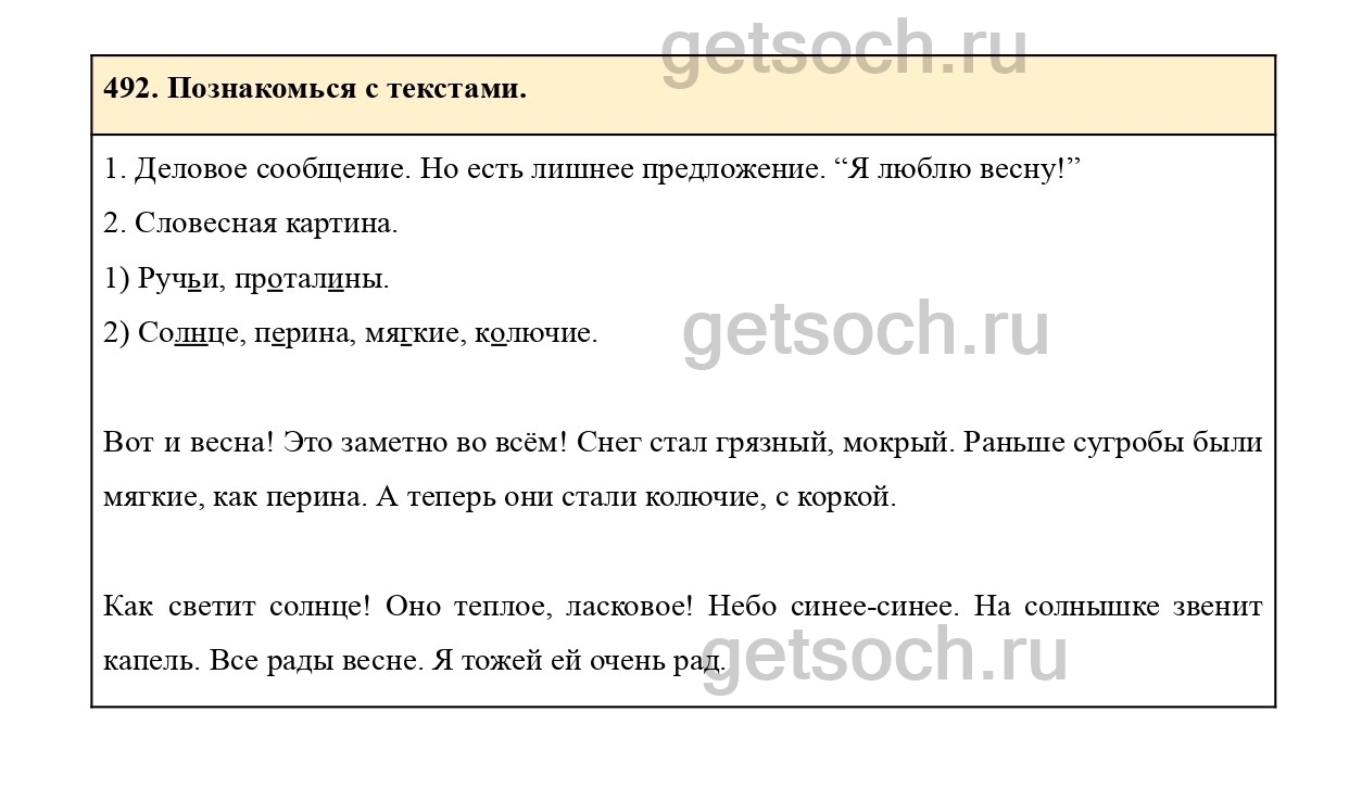 Рассмотрим ответы на Упражнение 492 из учебника по русскому языку для 2 класса Соловейчик
