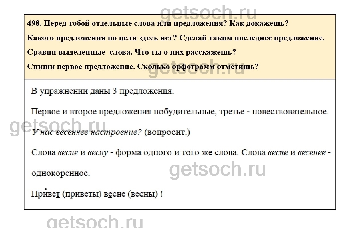 Рассмотрим ответы на Упражнение 498 из учебника по русскому языку для 2 класса Соловейчик