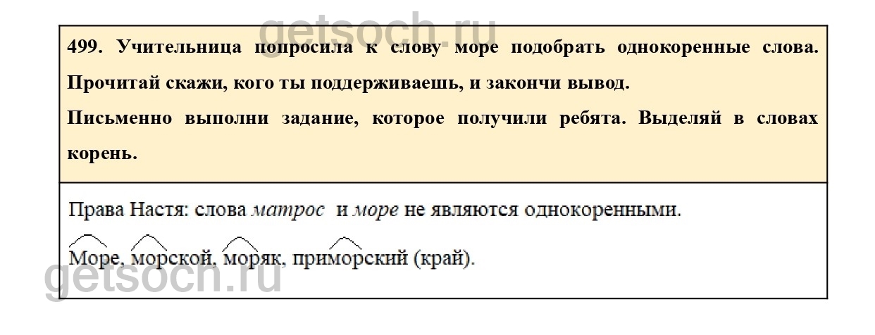 499. Учительница попросила к слову море подобрать однокоренные слова. Прочитай скажи, кого ты поддерживаешь, и закончи вывод.