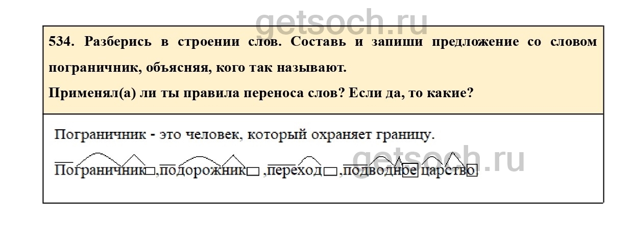 534. Разберись в строении слов. Составь и запиши предложение со словом пограничник, объясняя, кого так называют.
