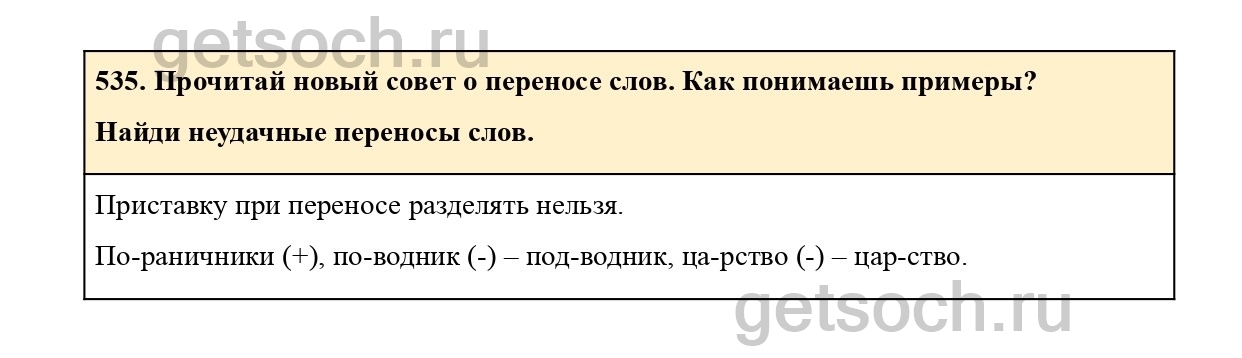 535. Прочитай новый совет о переносе слов. Как понимаешь примеры?