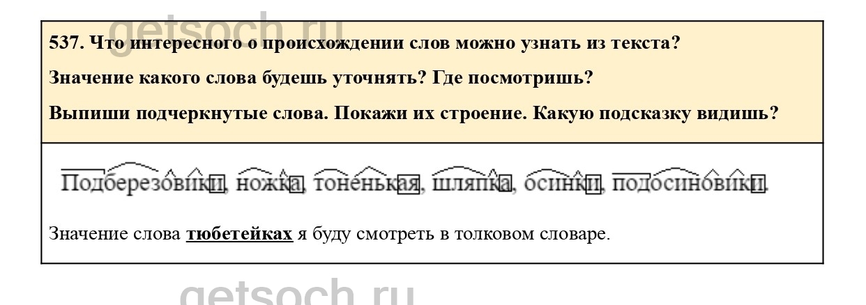 Рассмотрим ответы на Упражнение 537 из учебника по русскому языку для 2 класса Соловейчик
