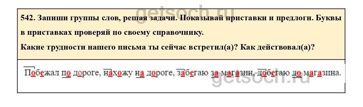 542. Запиши группы слов, решая задачи. Показывай приставки и предлоги. Буквы в приставках проверяй по своему справочнику.
