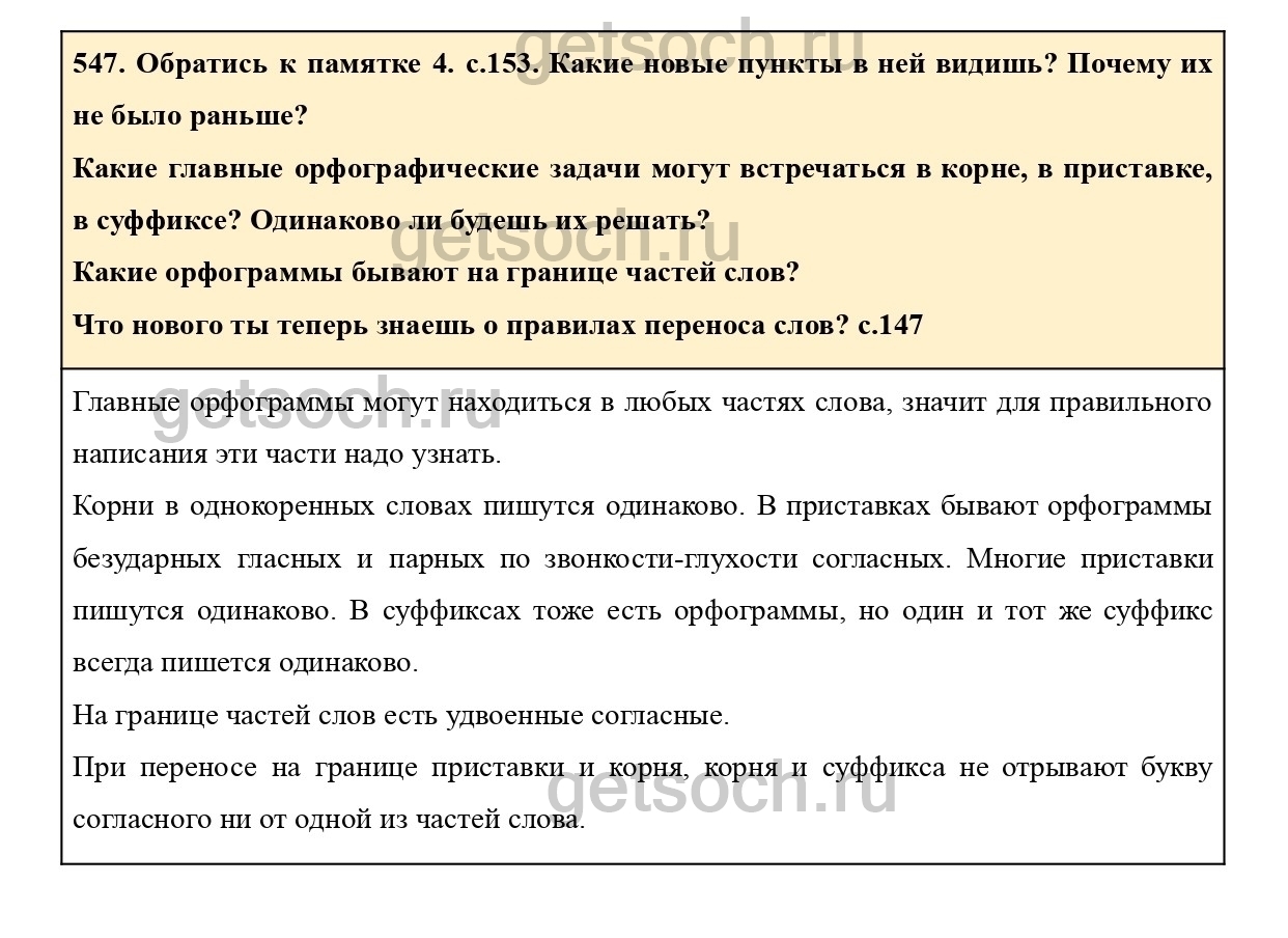 547. Обратись к памятке 4. с.153. Какие новые пункты в ней видишь? Почему их не было раньше?
