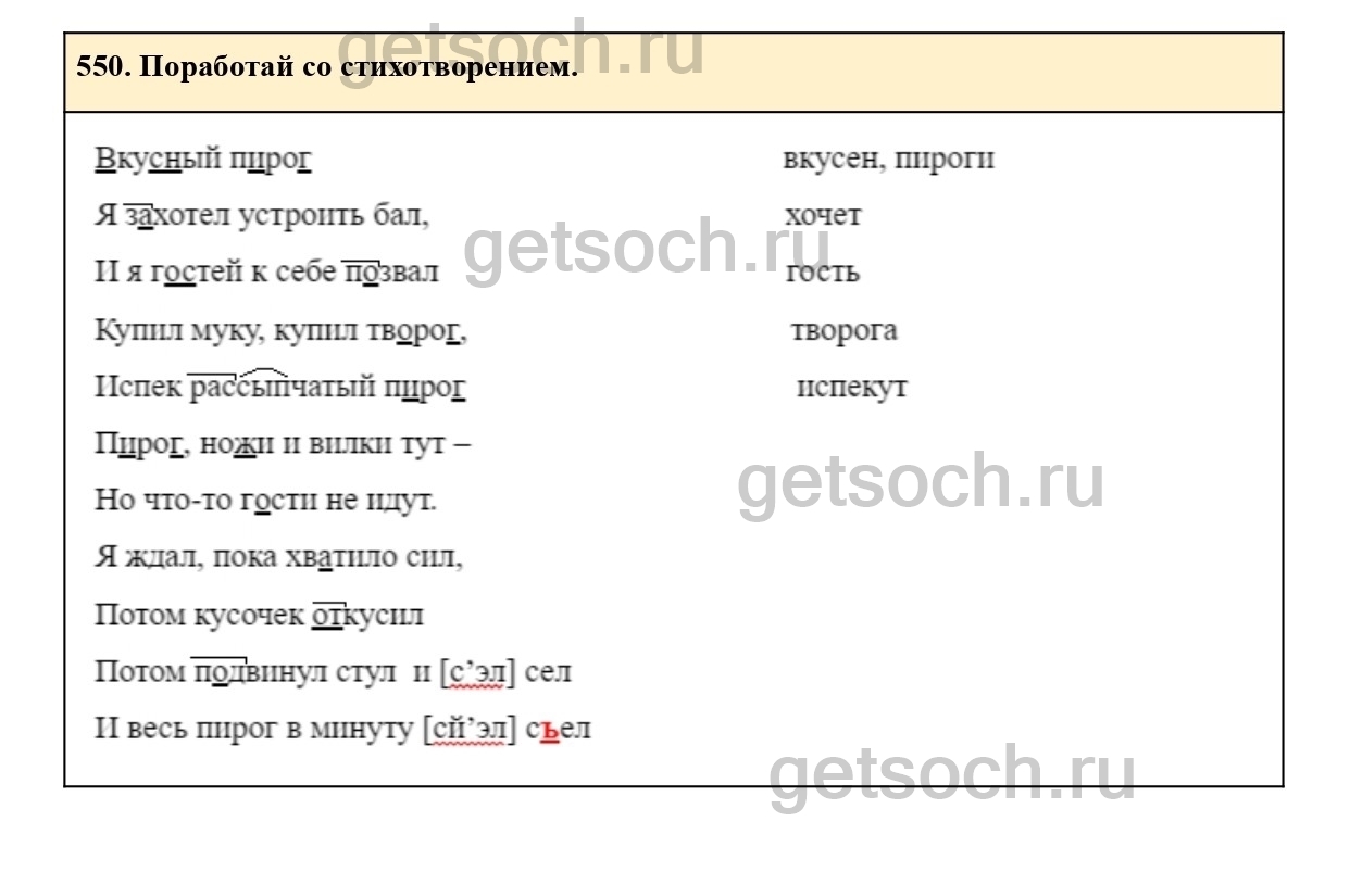 Рассмотрим ответы на Упражнение 550 из учебника по русскому языку для 2 класса Соловейчик