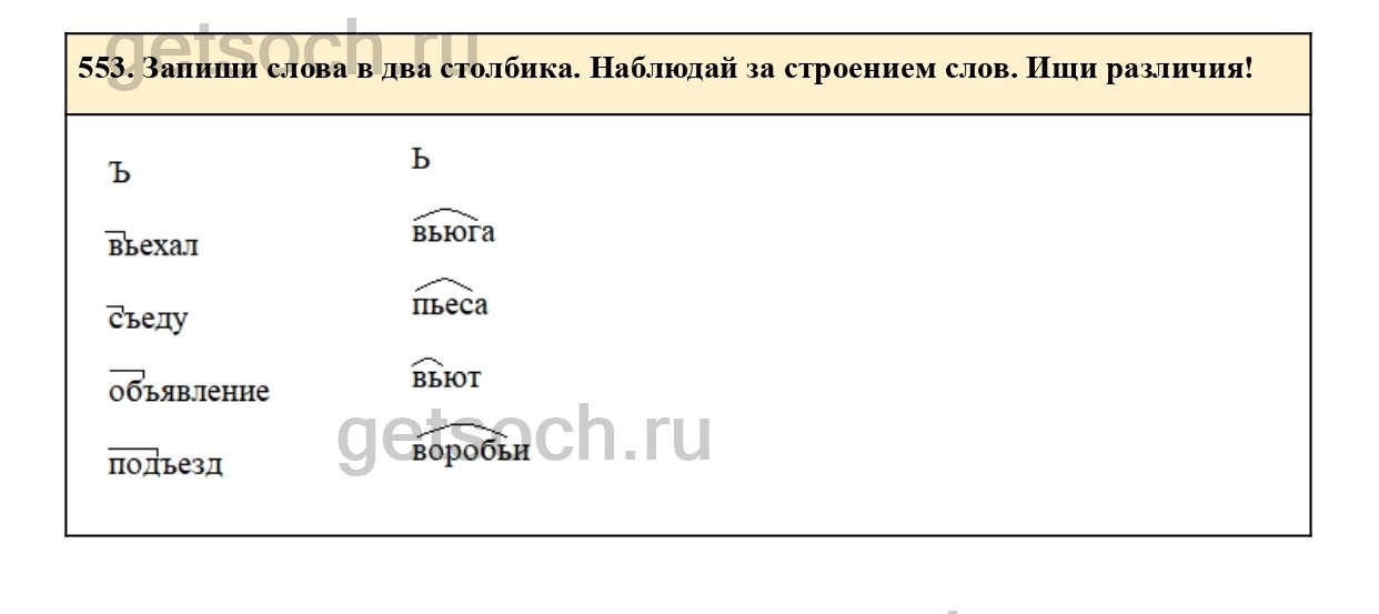 553. Запиши слова в два столбика. Наблюдай за строением слов. Ищи различия!
