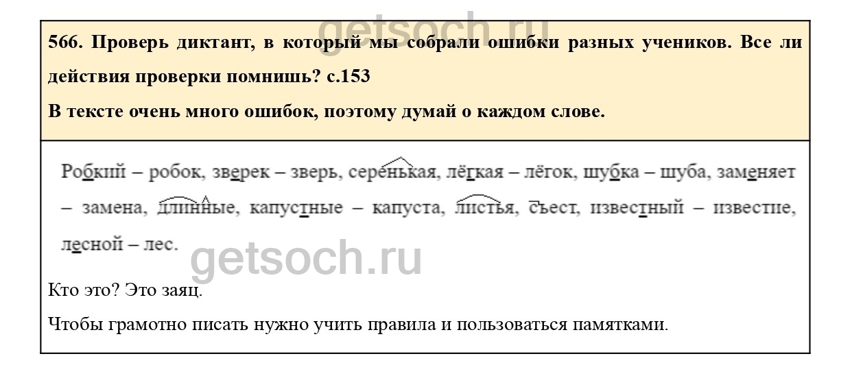 566. Проверь диктант, в который мы собрали ошибки разных учеников. Все ли действия проверки помнишь? с.153