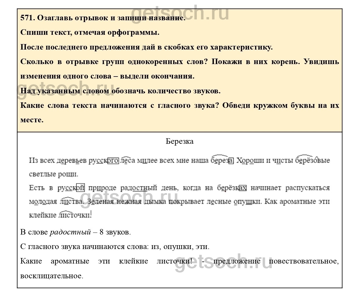 Рассмотрим ответы на Упражнение 571 из учебника по русскому языку для 2 класса Соловейчик