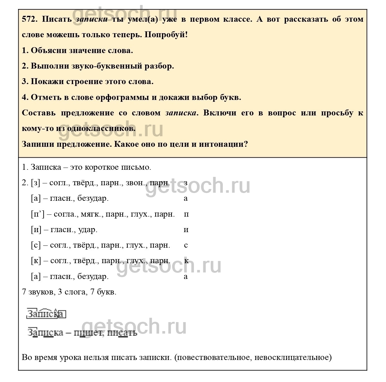 572. Писать записки ты умел(а) уже в первом классе. А вот рассказать об этом слове можешь только теперь. Попробуй!
