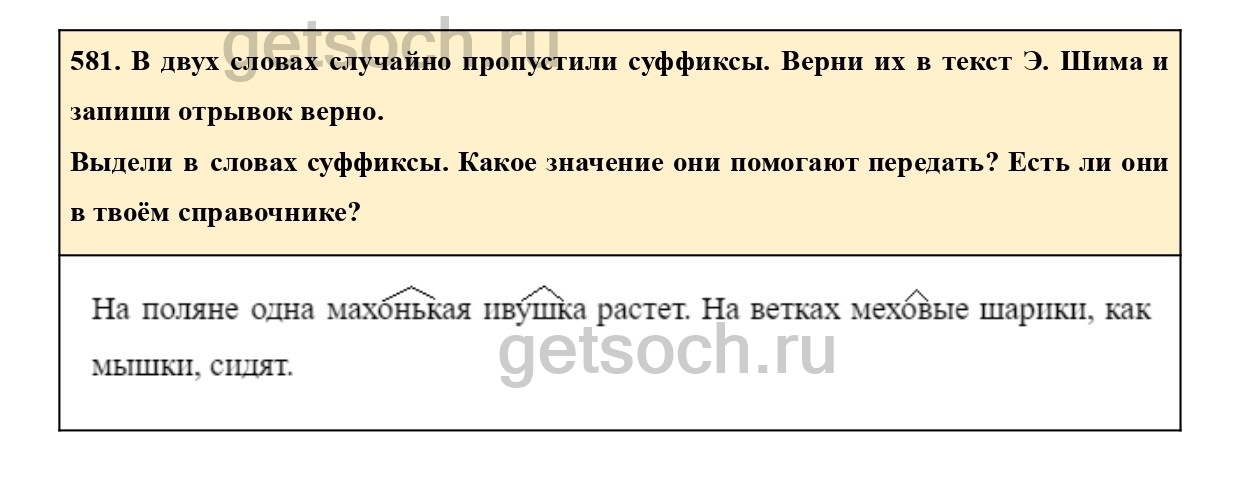 Рассмотрим ответы на Упражнение 581 из учебника по русскому языку для 2 класса Соловейчик