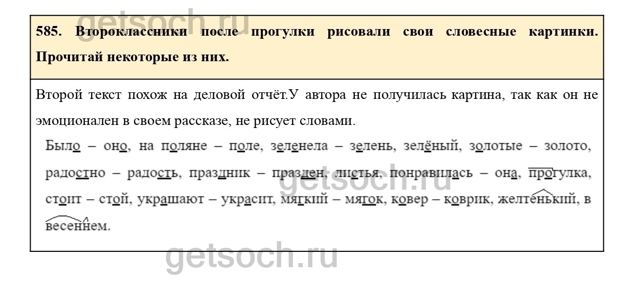 Рассмотрим ответы на Упражнение 585 из учебника по русскому языку для 2 класса Соловейчик