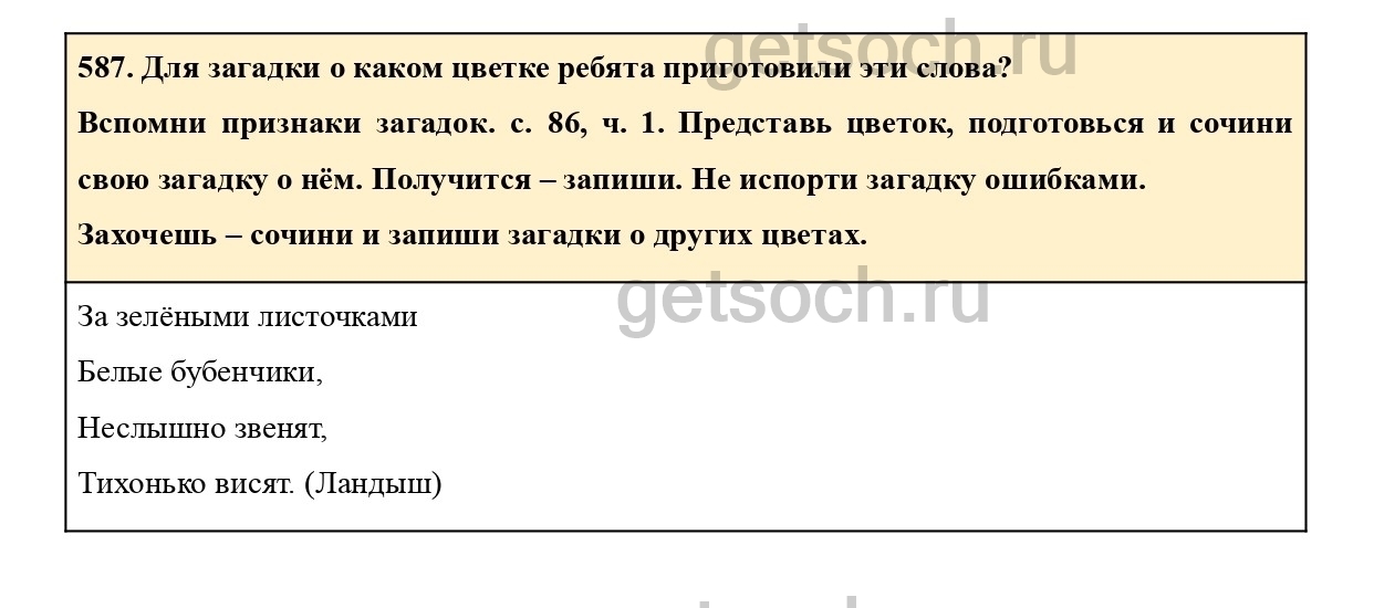 Рассмотрим ответы на Упражнение 587 из учебника по русскому языку для 2 класса Соловейчик