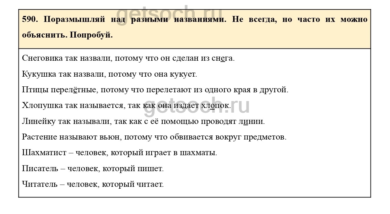 Рассмотрим ответы на Упражнение 590 из учебника по русскому языку для 2 класса Соловейчик