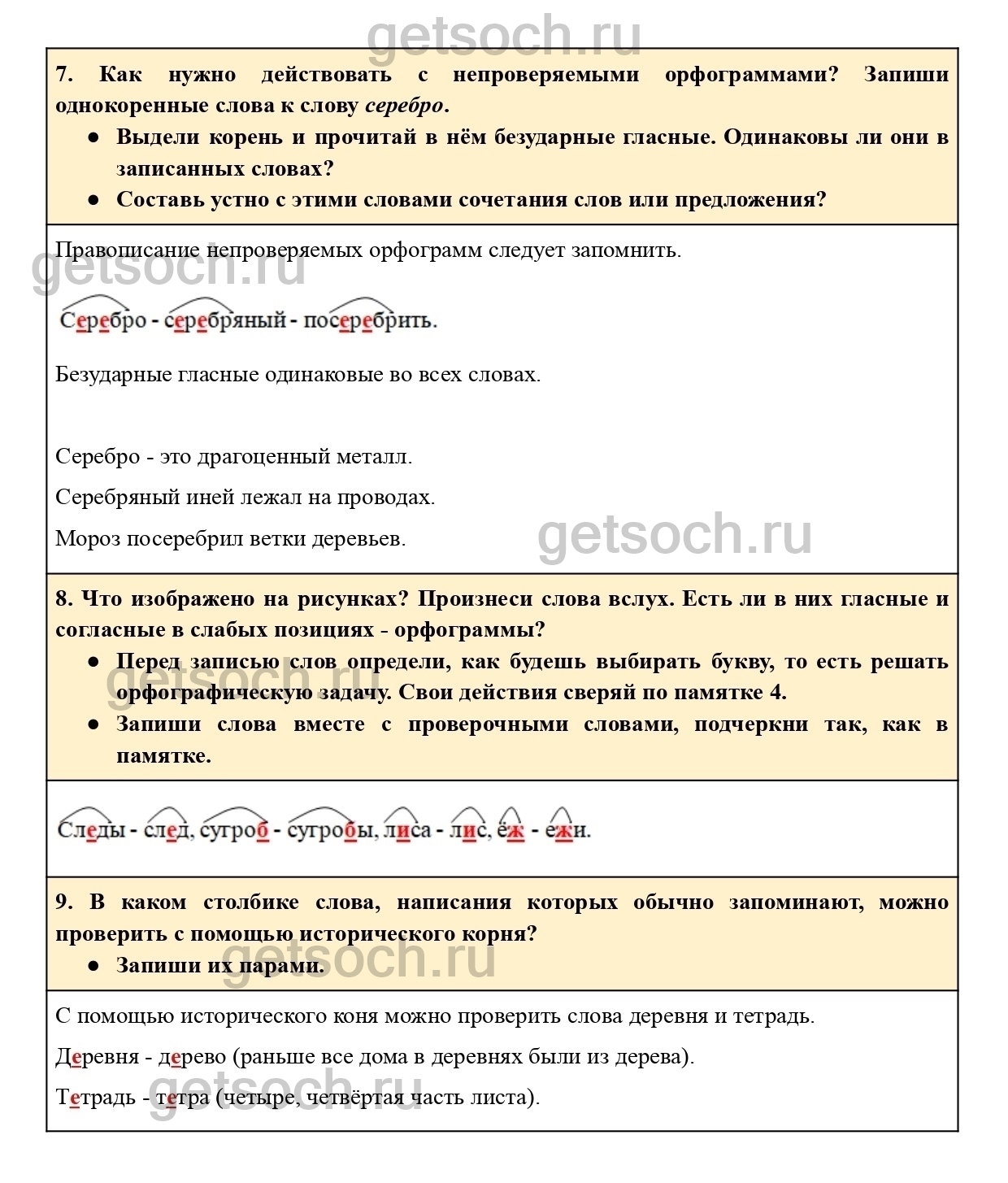 Перед записью слов определи, как будешь выбирать букву, то есть решать орфографическую задачу. Свои действия сверяй по памятке 4.