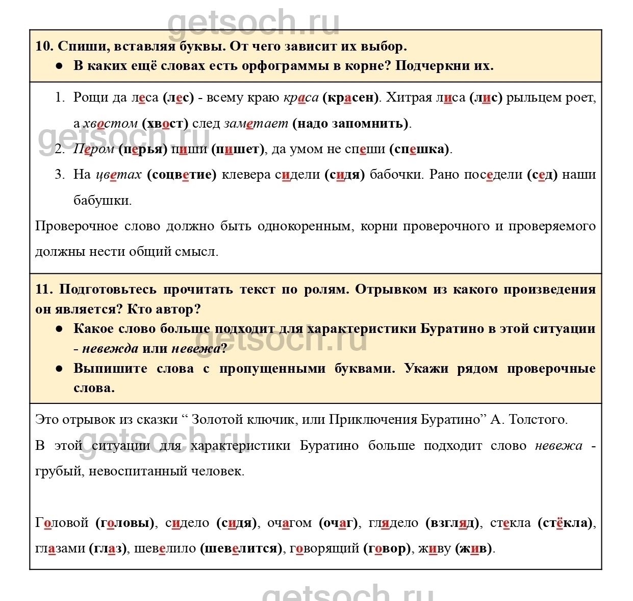 “10. Спиши, вставляя буквы. От чего зависит их выбор.