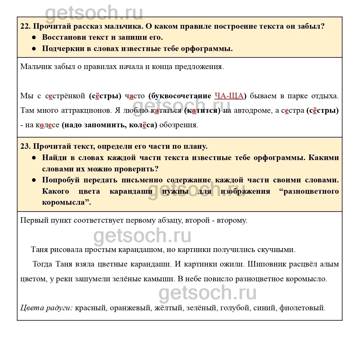“23. Прочитай текст, определи его части по плану.